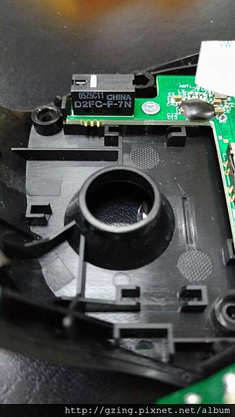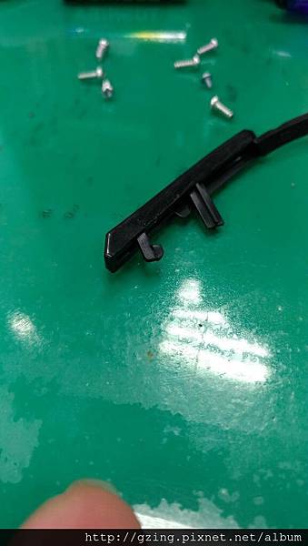 4. 滑鼠右鍵的塑膠按鈕 ,可以拆下 後把圖片上 末端的 塑膠研磨過 ,可以改善 按鍵下壓回彈容易摩擦 造成不順暢的問題。